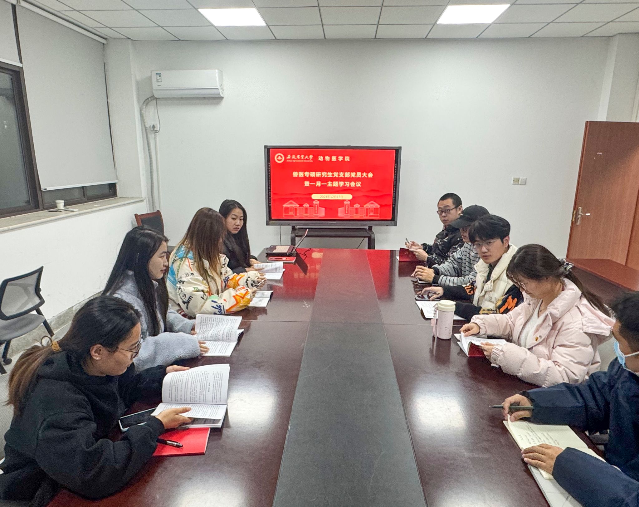 本网讯 12月17日,动物医学院兽医专硕研究生党支部在学院308会议室召开党员大会暨“一月一主题”学习会。