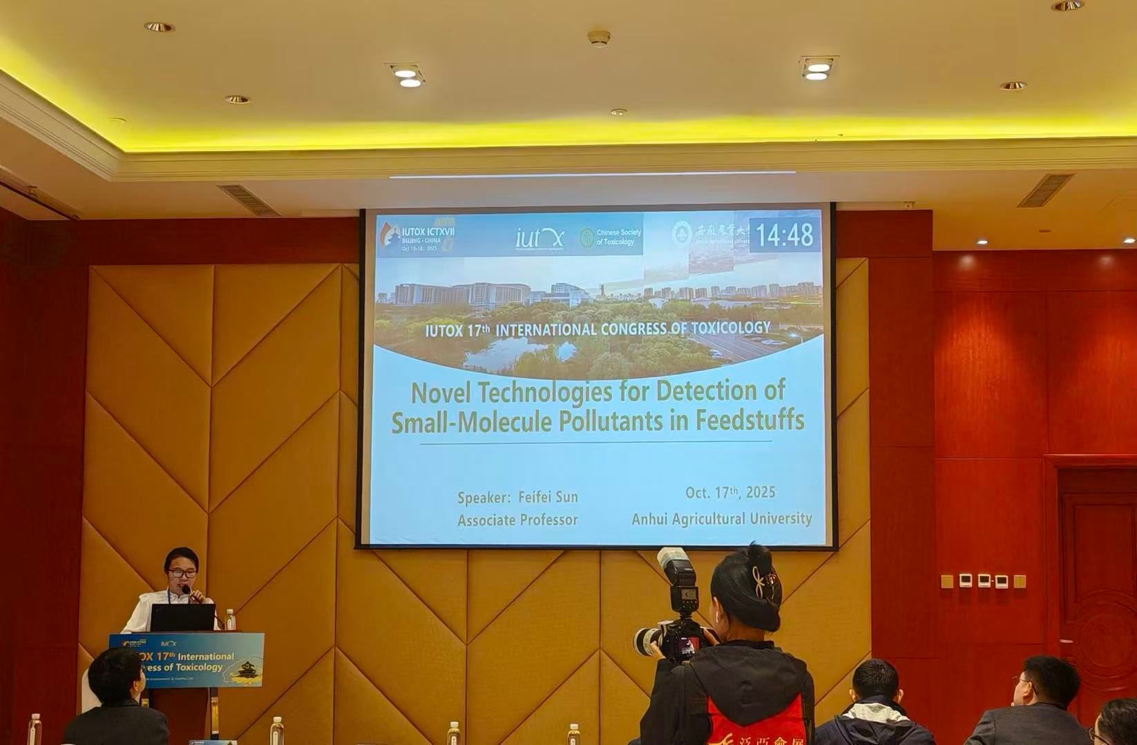 本次大会由国际毒理学联合会与中国毒理学会联合主办,以“毒理学促进安全环境与健康生活”为主题,吸引了全球60多个国家超过2000名专家学者与会。会议共设置42个专题分会场,内容涵盖临床毒理学、食品与环境毒理学、检测技术创新等前沿领域。孙菲菲老师在会上作了题为《饲料中典型小分子污染物的精准检测新技术研究》(Novel Technologies for Detection of Small-Molecule Pollutants in Feedstuffs)的学术报告,系统介绍了兽医药理与毒理学课题组在污染物快速识别、痕量检测与风险评估方面的新方法与技术突破,为保障农产品质量安全与人类健康提供了创新性的技术支撑,报告内容引起了与会同行的广泛关注与热烈讨论。
