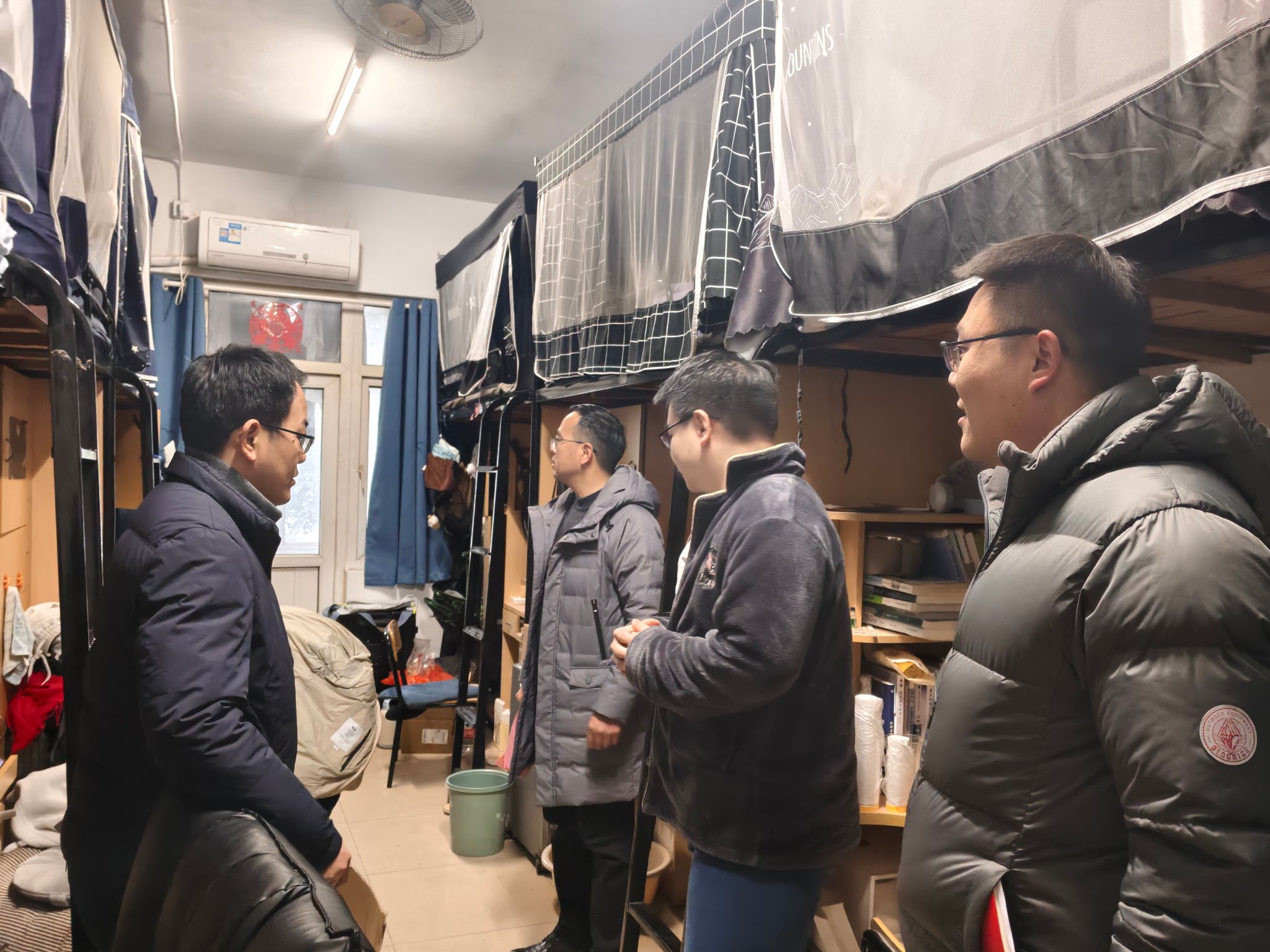 检查组走访了各年级学生宿舍,重点围绕用电安全、消防安全、宿舍卫生、财物安全以及假期行、留校学生情况等方面进行了认真排查。检查过程中,学院领导与同学们进行了亲切交谈,详细询问了他们的学习、生活状况及假期安排,并反复叮嘱大家要牢固树立“安全第一”的思想。