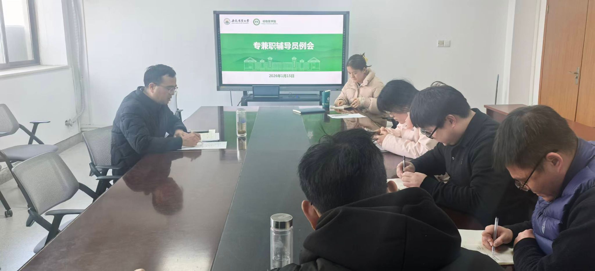 本网讯1月15日下午,动物医学院在学院308会议室召开寒假前学生工作会议,部署假期前后学生教育管理重点工作,确保学期末及寒假期间各项工作平稳有序。会议由学院党委副书记张锐主持,全体专兼职辅导员参加会议。