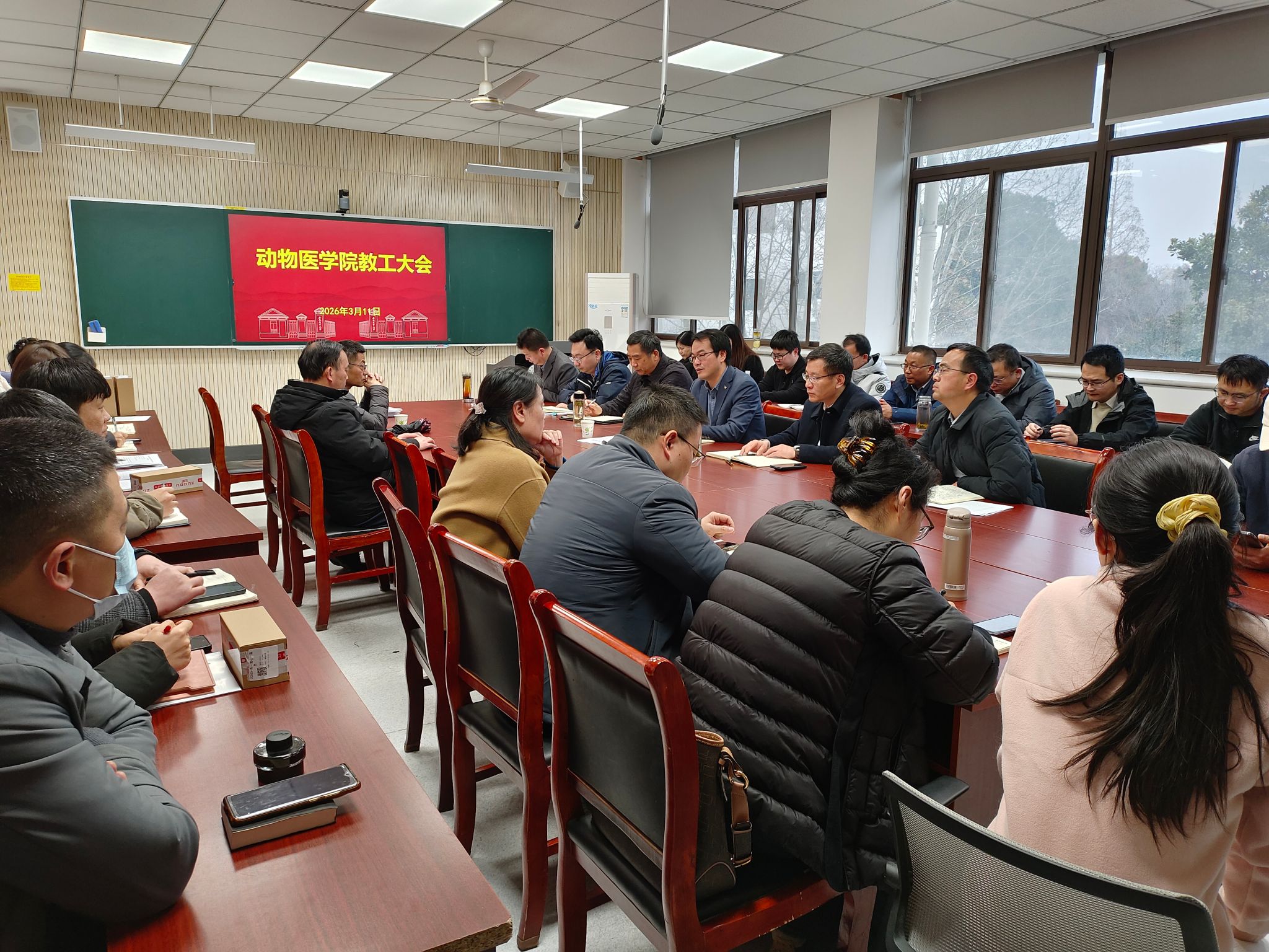 本网讯 3月11日,动物医学院召开教职工大会,深入学习贯彻学校开学工作部署和二十届四中全会精神,总结回顾2025年工作,谋划部署年度各项任务,传达树立和践行正确政绩观学习教育有关要求。