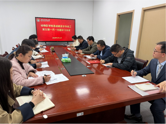 本网讯 4月16日,基础兽医学系教工党支部在学院207会议室召开党员大会暨“一月一主题”学习会议。会议由支部副书记王勇主持,学院党委书记吴永红、副院长涂健以普通党员身份参会。