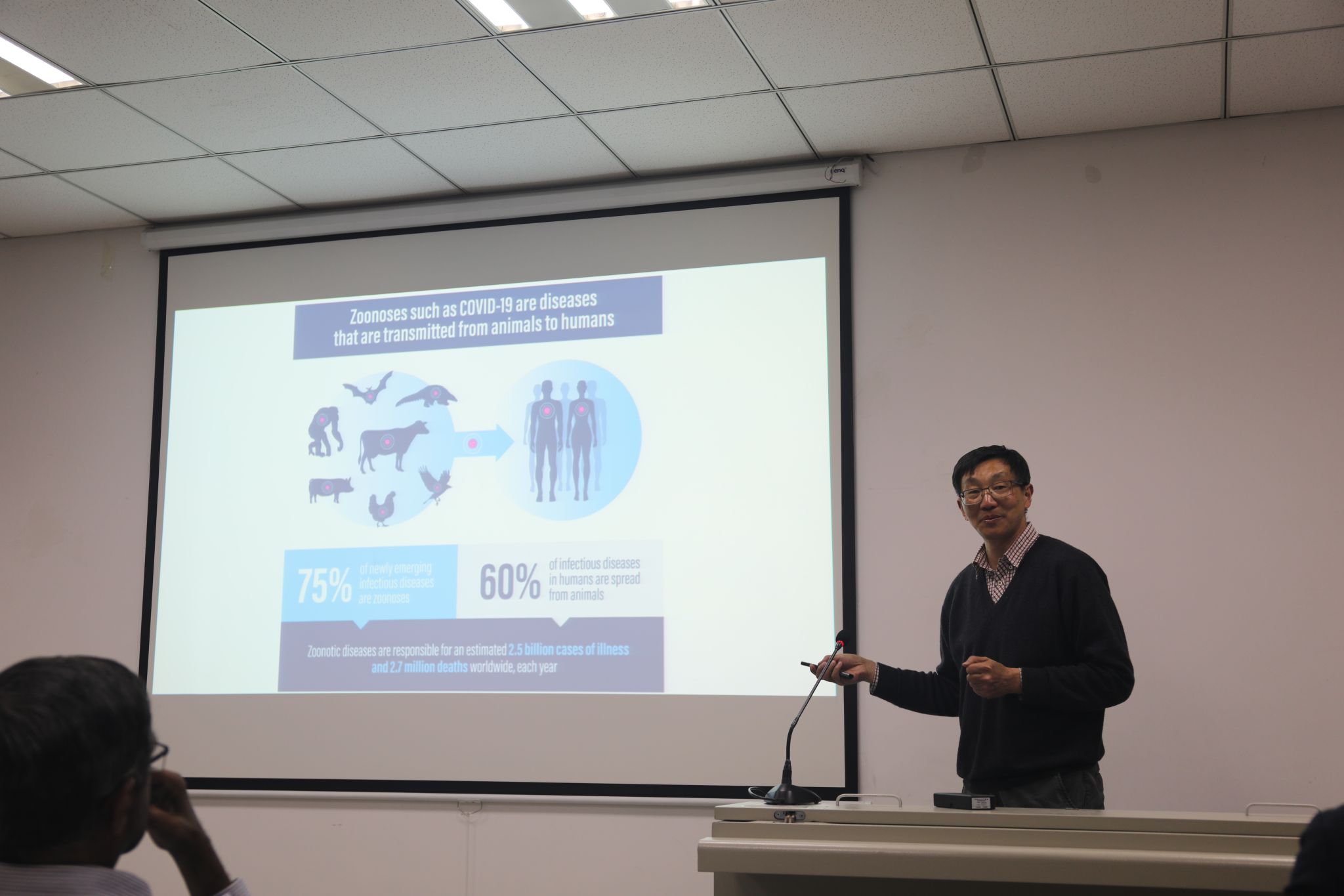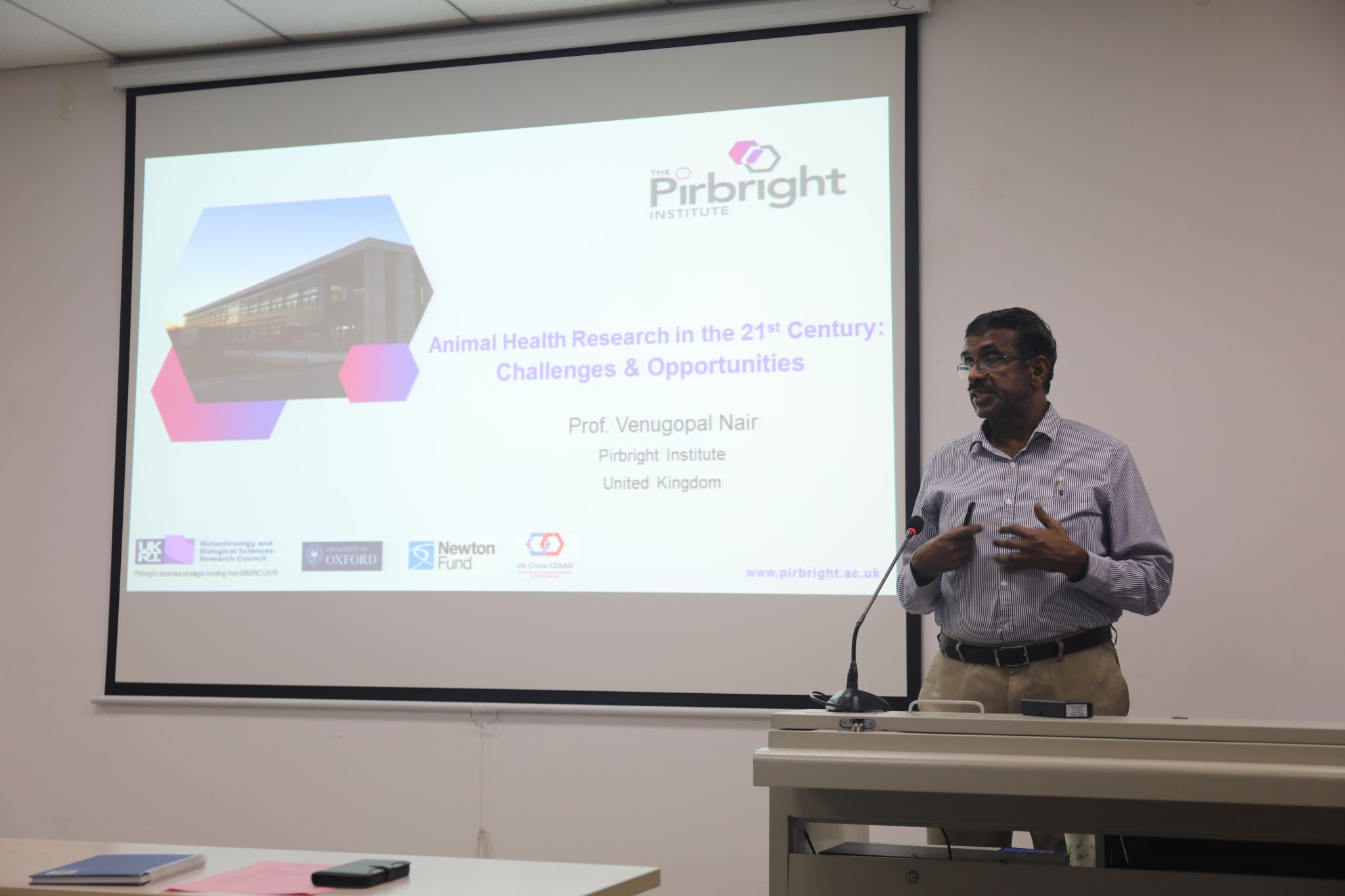 Venugopal Nair教授和赵郁光研究员分别做了题为《Challenges in the control of infectious animal diseases including zoonosis》和《Structural view of viruses, receptors and wnt signaling molecules》的精彩报告。与会教师、研究生结合自身研究领域相关问题与专家们进行了积极互动,现场氛围融洽。