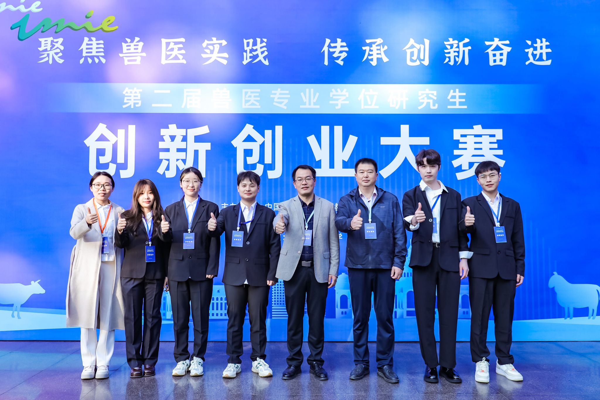 本次大赛吸引了来自全国49所高校和科研单位64支创新创业组参赛队伍,500余名师生参与其中。大赛分设创新组和创业组,比赛内容包括作品论述汇报和专业素养展示两个环节。经过一天激烈角逐,队长郑庆雨同学与队员胡孝立、史明豪、刘冰心通力合作,在创业赛道21个作品中脱颖而出,以总分第二名的成绩荣获一等奖。成绩的取得将进一步提升学院兽医专业学位研究生实践创新能力培养,推动学院应用型兽医人才培养,促进兽医专业学位教育高质量发展。(图文/郑庆雨 编辑/杜亚娜 预审/王希春 审核/吴永红)