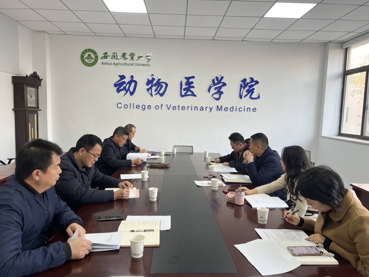本网讯 11月27日下午,在动物医学院308会议室,合肥市蜀山区城市运营有限公司与安徽农业大学动物医学院就共建宠物医院事宜进行了深入交流,动物医学院党委书记吴永红、副院长王希春、蜀山区城投总经理赵建光、蜀山区城市运营公司副总经理沙丽等相关人员参加会议。