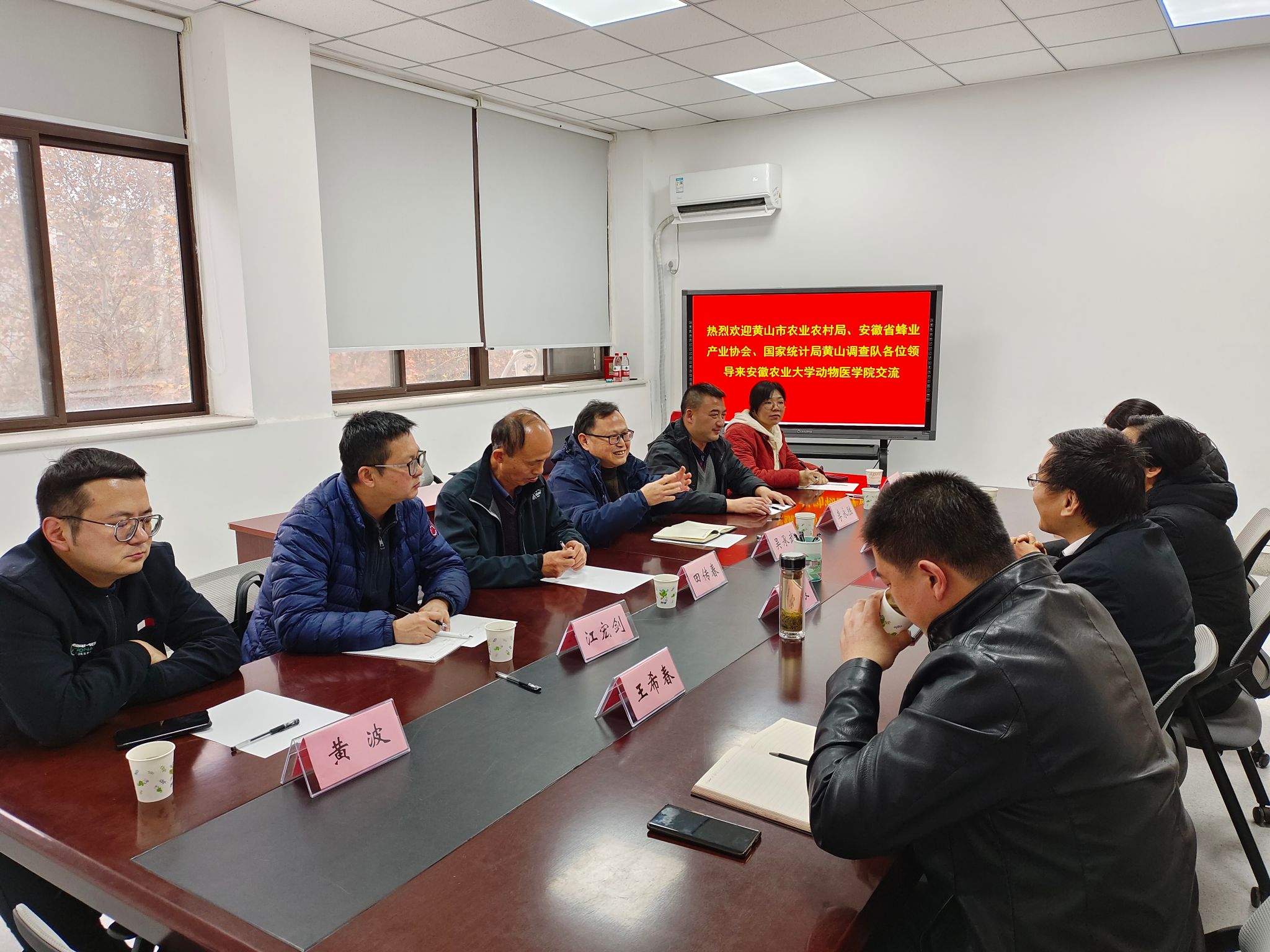 吴承武介绍了黄山市产业发展特色与优势,并就如何进行“一局二院”三方共建皖南花猪研究院以及今后在区域特色健康养殖、蜂病防控和服务大健康等方面加强合作进行了深度交流。孙裴对来访领导和专家表示热烈欢迎,介绍了学院发展基本情况和特色,提出我院以此次共建皖南花猪研究院为契机,继续大力推进学院服务产业需求、培养优秀人才的专业和学科建设目标。