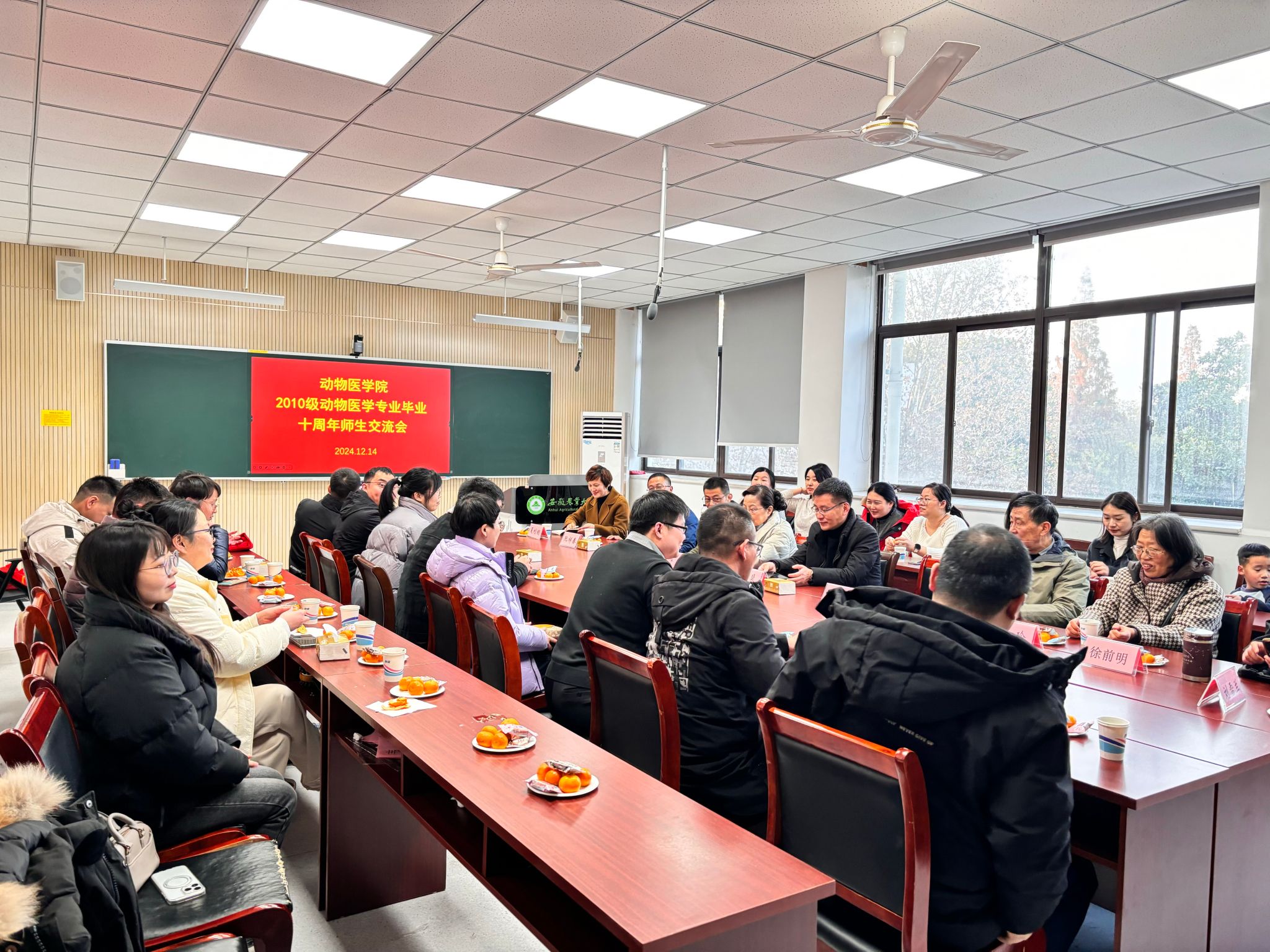 本网讯 12月14日,2014届动物医学专业毕业生,从五湖四海返回母校,师生共庆毕业十周年。动物医学院院长孙裴、副院长王希春,林学与园林学院党委副书记、辅导员夏利明及教师代表参加座谈会。