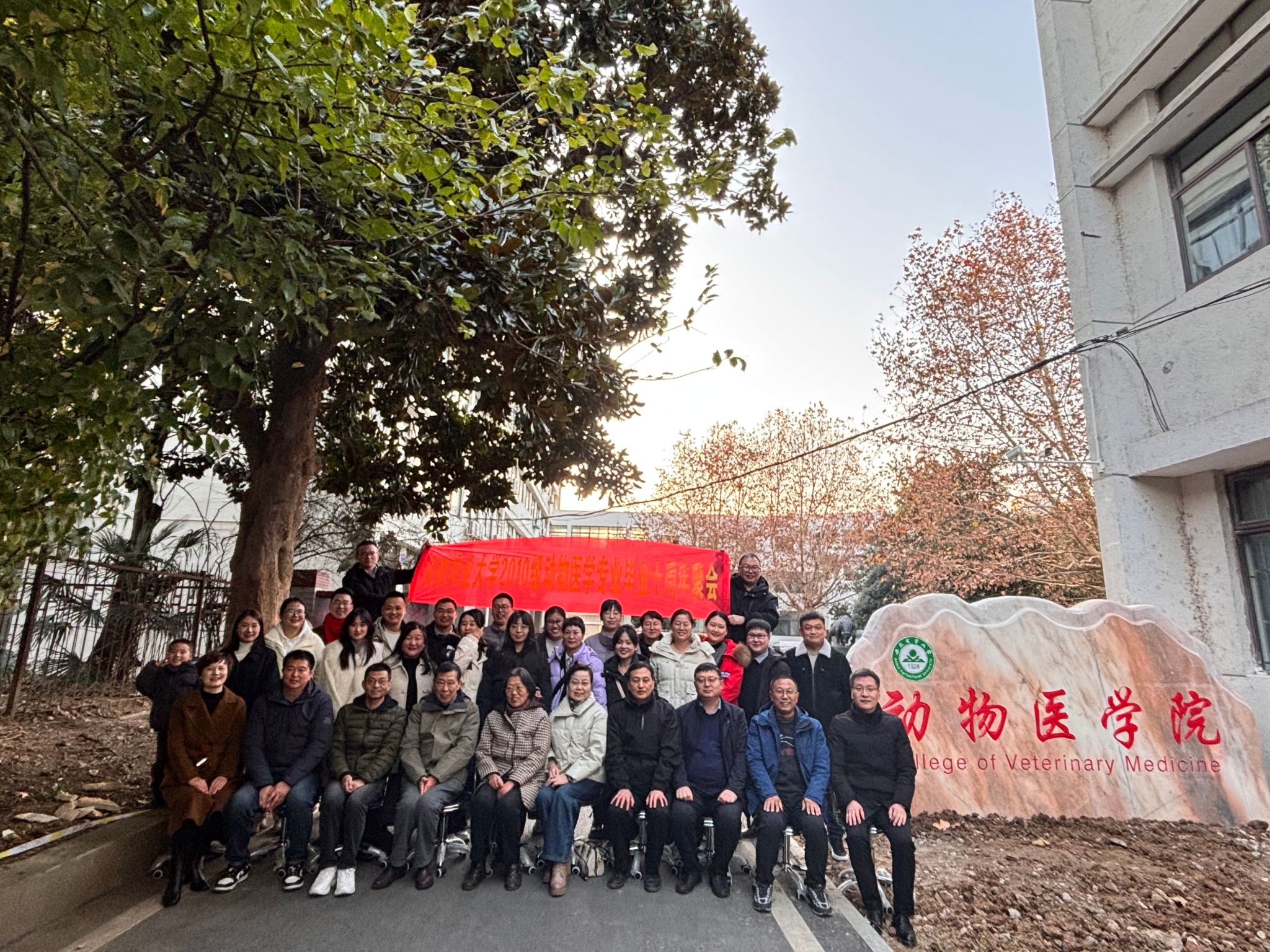 与会师生共同回忆大学期间的美好时光和相处点滴。校友们分享了自己十年来的经历和感悟,表达了对老师们的思念和感谢,并表示无论大家现在从事何种工作,兽医人不怕苦不怕累的奋斗精神已经深深扎根在心中,成为在社会中拼搏的精神力量。返校当日,校友们漫步在熟悉的校园中,宿舍、图书馆、神农像雕塑、教学楼,每一处都仿佛是老友重逢,唤醒大家心中珍贵的记忆,仿佛又回到了那个青涩的大学时光。(图文/李亮 编辑/杜亚娜 预审/王希春 审核/吴永红)