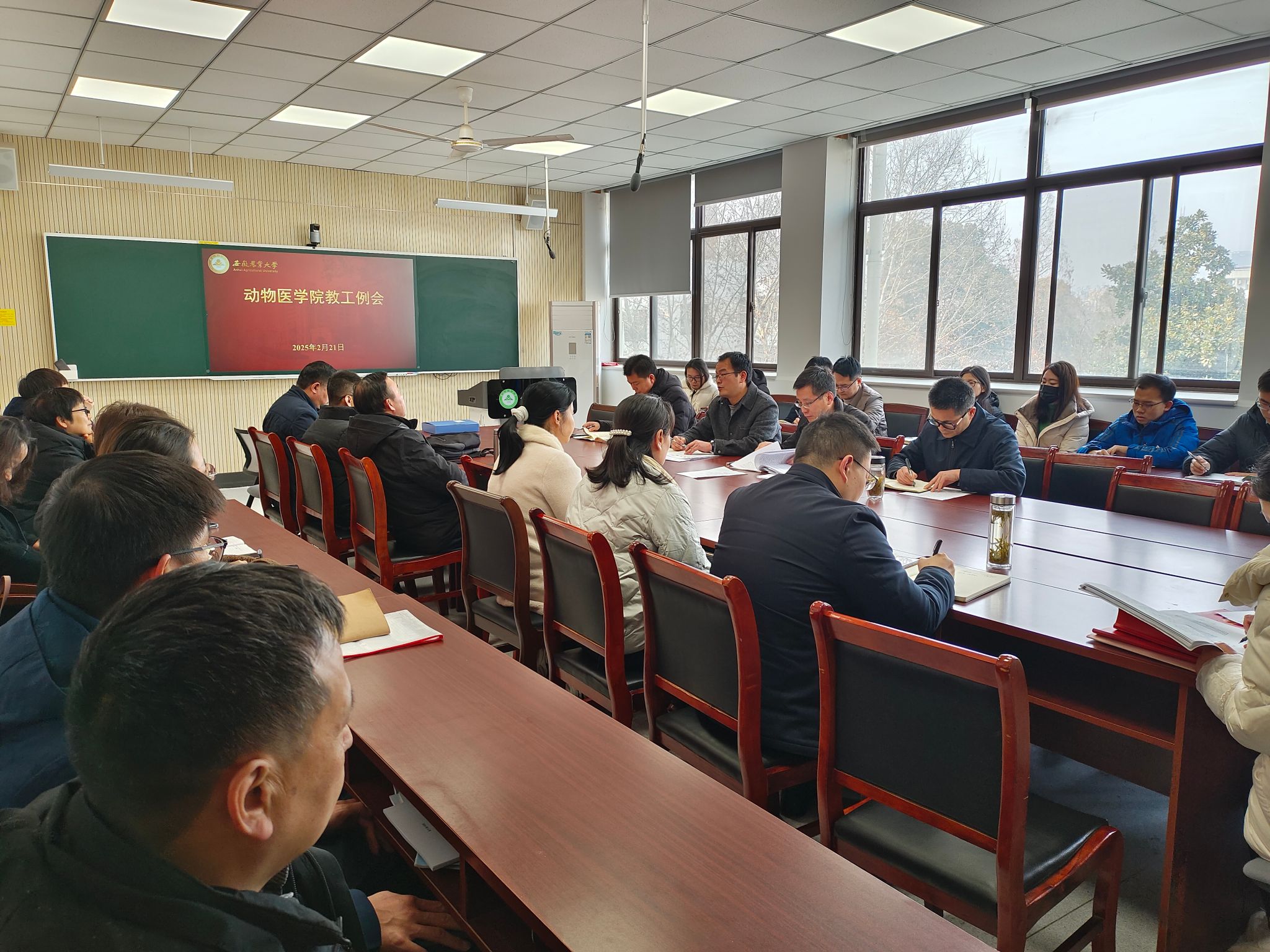 会议重点强调了上好开学第一课。学院领导围绕各自分管工作进行了全面的安排,对学生开学安全教育、日常管理、学风建设、就业、实验室安全管理、教学实习以及本科审核评估问题反馈等工作,科研、研究生培养、兽医学博士点申报、人才招聘等工作进行详细布置,还就意识形态工作、师德师风和学术诚信建设等工作同部署。号召全体师生员工在新学期展现新气象,以饱满的热情和昂扬的斗志开好头、起好步,共同为动物医学院的发展贡献力量。(图/文/杜亚娜 编辑/杜亚娜 预审/王希春 审核/孙裴)