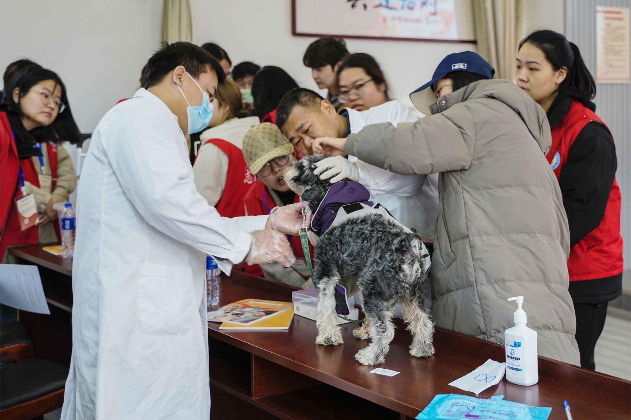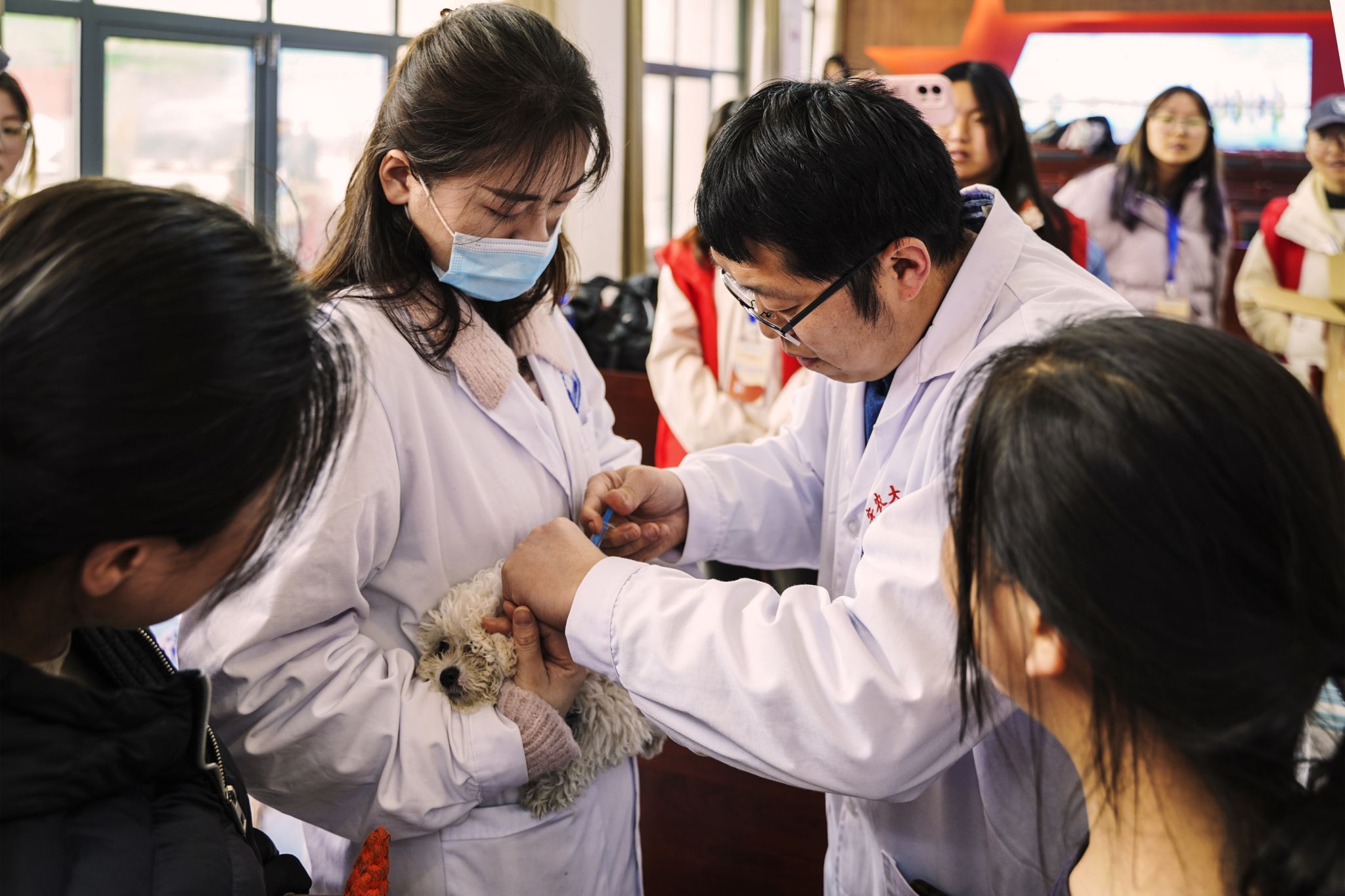 活动中,临床兽医党员教师为宠物进行了义诊,免费为宠物接种狂犬疫苗、动物体表检查、口腔检查和耳道检查等,并向市民们介绍狂犬病防控和动物疫苗接种相关专业知识,宣传宠物饲养知识,倡导文明科学养宠。