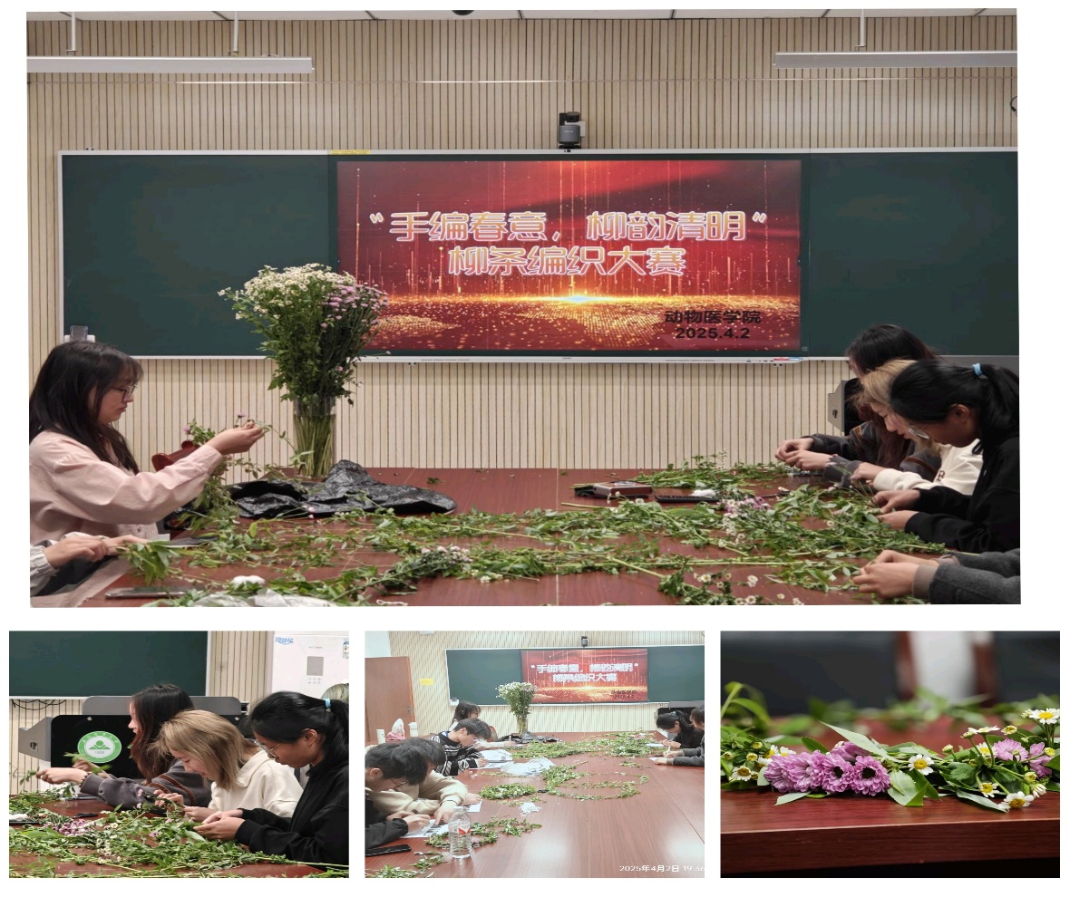 4月2日晚,学院在306会议室举行“手编春意,柳韵清明”柳条编织活动。同学们将一根根平凡的柳条和一朵朵淡雅的鲜花编制成一个个美丽的柳枝花环,寄托了对革命先烈的无限哀思和对春天的美好祝愿。