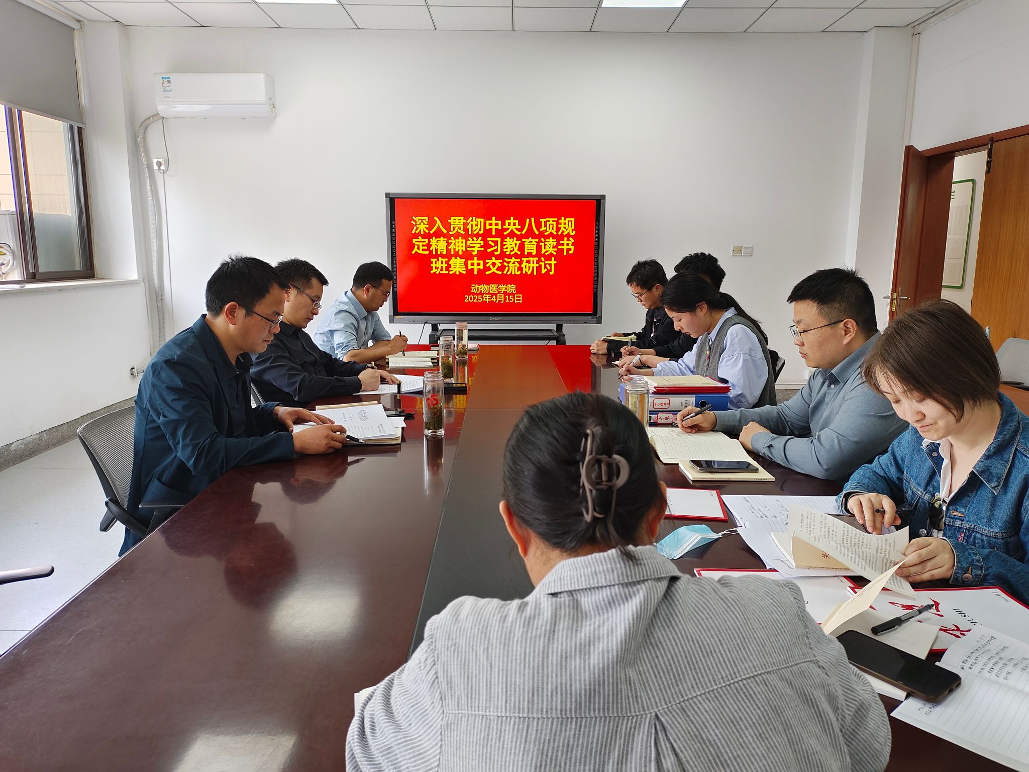 本网讯 4月14日-15日,动物医学院党委开展深入贯彻中央八项规定精神学习教育读书班。通过集中学习、个人自学与集中研讨,深化了对中央八项规定精神的时代内涵和实践要求的认识,明确了新形势下加强作风建设的责任与方向。