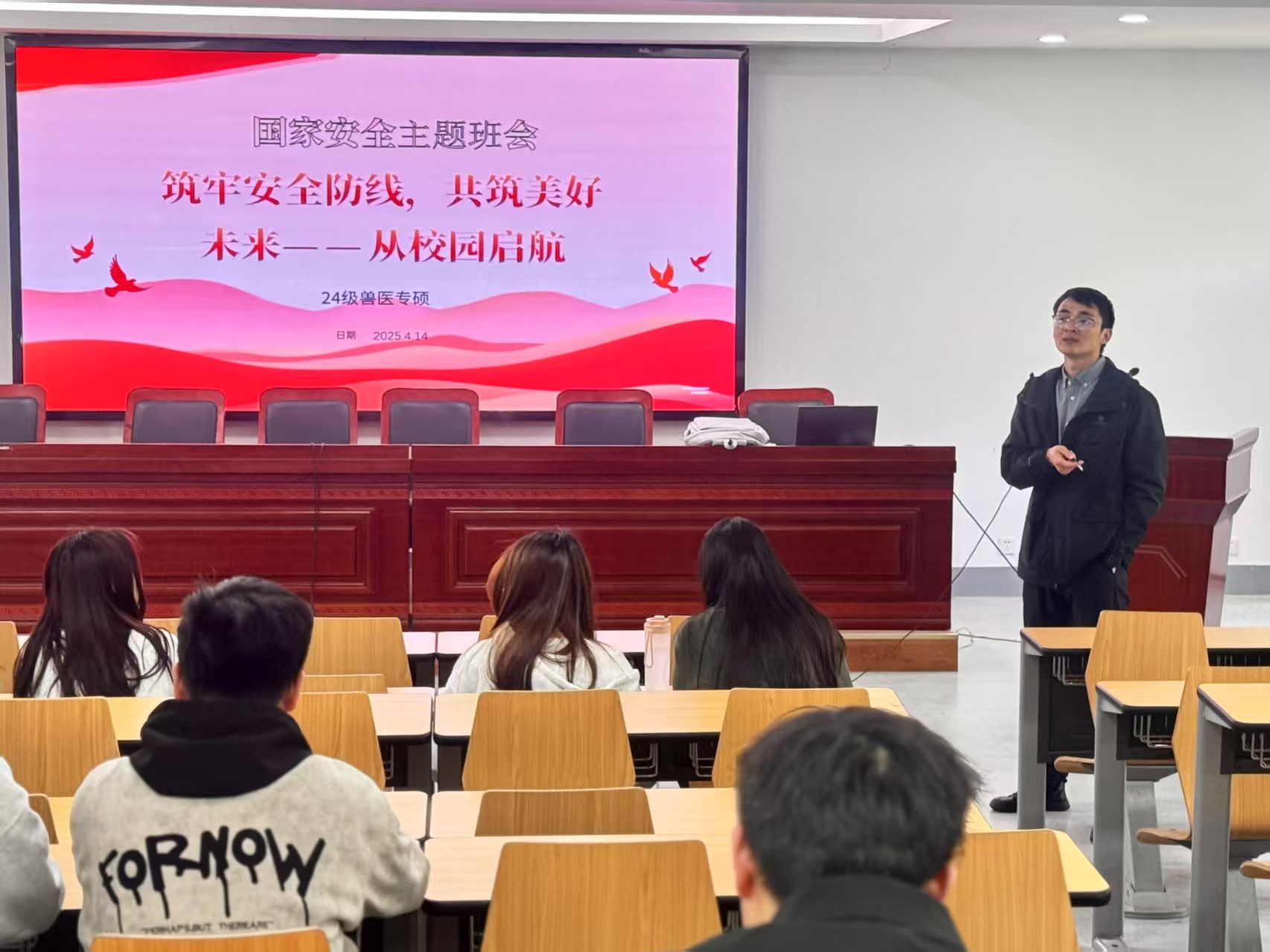 本网讯 在我国第十个“全民国家安全教育日”来临之际,为进一步增强全院师生安全防范意识和应急处突能力,营造维护国家安全的浓厚氛围,动物医学院于4月15日前后组织各班级开展“国家安全 青春担当”主题班会,筑牢校园安全的“精神长城”。