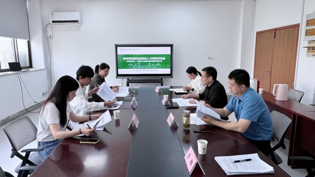 本网讯 5月7日,安徽东方帝维生物制品股份有限公司总经理张辰羽等一行来访学院,代表企业方,就共同申报并获批的教育部安徽高等研究院校企联合人才培养和科研攻关项目招生与培养展开深入交流。院长孙裴主持会议。副院长王希春出席会议,教师代表参加交流。