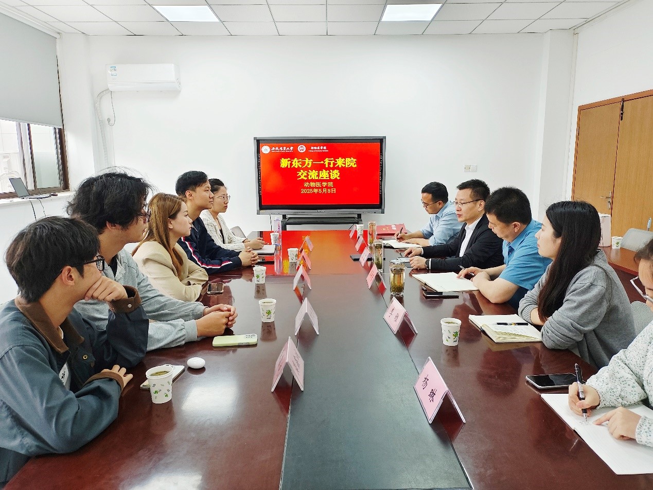 会上,学院对新东方代表的到来表示热烈欢迎,并简要介绍了学院的专业和学科建设、人才培养成果等情况。并提出,在全球一体化发展大背景下,提升动物医学专业学生的国际视野、英语交际能力及国际竞争力尤为重要,期待通过与新东方的合作,为学生搭建更广阔的对外交流与学习平台。新东方代表介绍了拟与学院合作的初步方案,就学生重点关注的口语沙龙、单词打卡、出国讲座与培训、跨文化交际能力提升等内容做了积极的设计。参会人员,就项目具体实施细节、进行了深入交流。