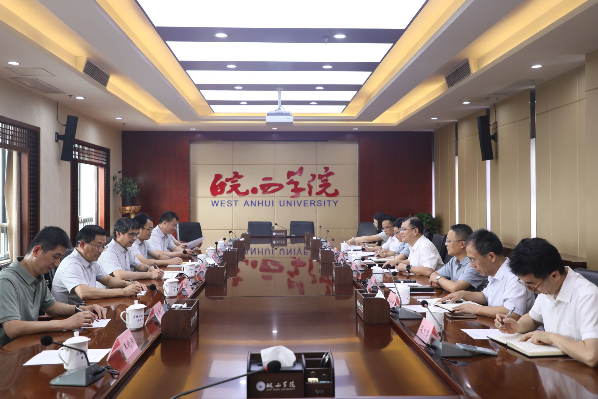 本网讯 6月27日,校党委常委、副校长蔡德军赴皖西学院看望慰问研究生招生宣传工作人员,并与皖西学院领导班子、部分职能部门负责人进行了座谈交流,我校数据管理处负责人、动物医学院班子成员及招生宣讲老师参加了会议。