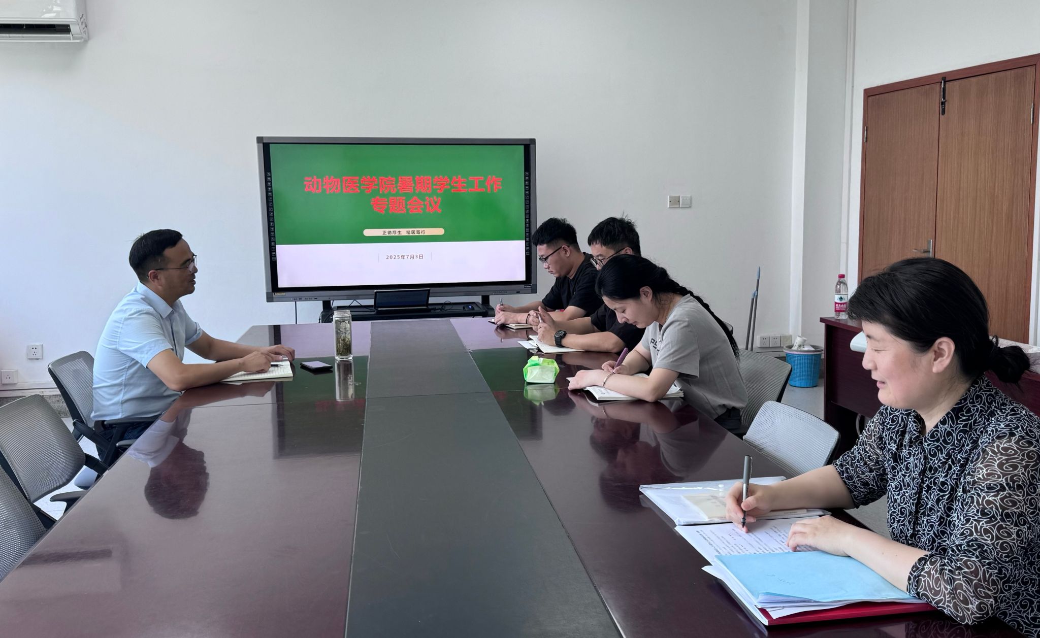 本网讯 7月3日上午,动物医学院在动医楼308会议室召开学生工作专题会议,部署暑期学生工作。会议由学院党委副书记张锐主持,全体辅导员参会。