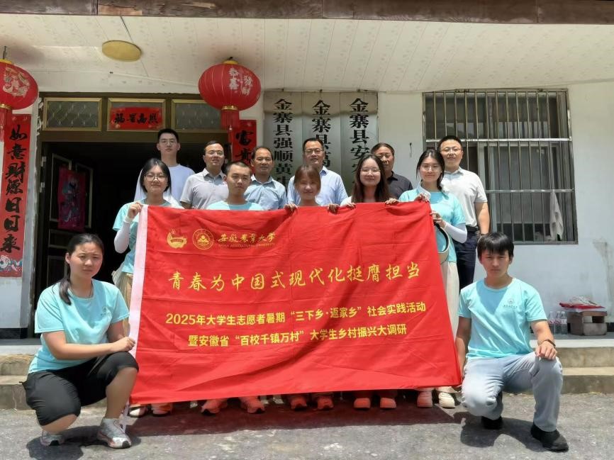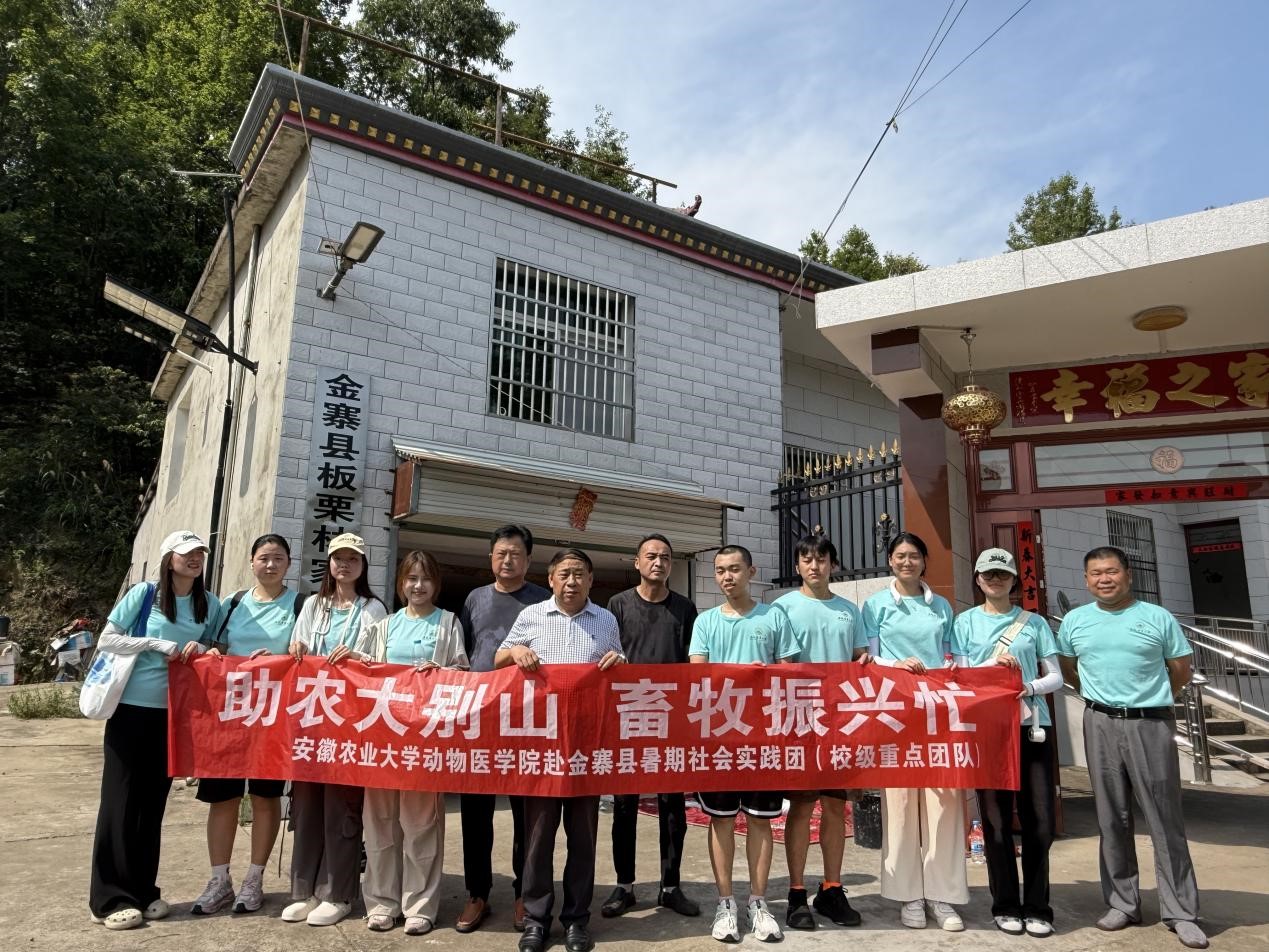 本网讯 7月14 日至16日,动物医学院暑期社会实践团赴六安市金寨县开展 “三下乡” 社会实践活动。团队在扎根大别山30年的李福宝教授带领下,以“助农大别山,畜牧振兴忙”为主题,通过技术指导、产业调研和红色教育,为革命老区畜牧业发展注入青春动能。