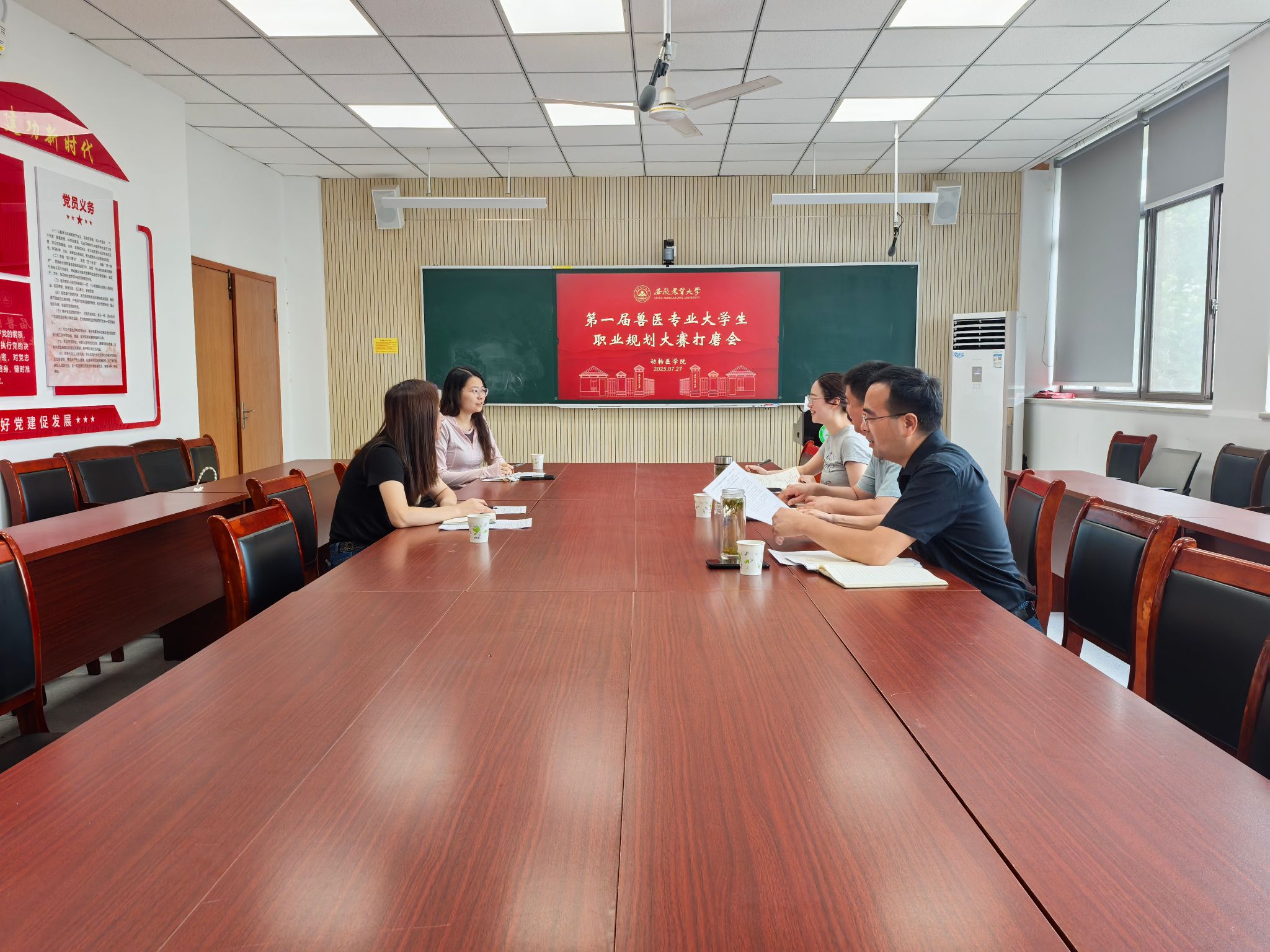 本网讯 7月27日,动物医学院在306会议室举行“第一届兽医专业大学生职业规划大赛”晋级决赛作品打磨会。学院负责人、材化学院职业生涯规划大赛指导教师徐菲、作品指导老师及参赛选手参加会议。
