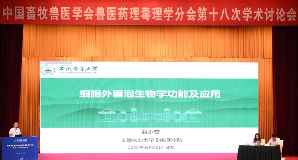 本网讯 8月19日-22日,中国畜牧兽医学会兽医药理毒理学分会第十八次学术讨论会在四川省成都市召开。动物医学院兽医药理与毒理学团队老师和部分研究生参加了本次学术盛会。