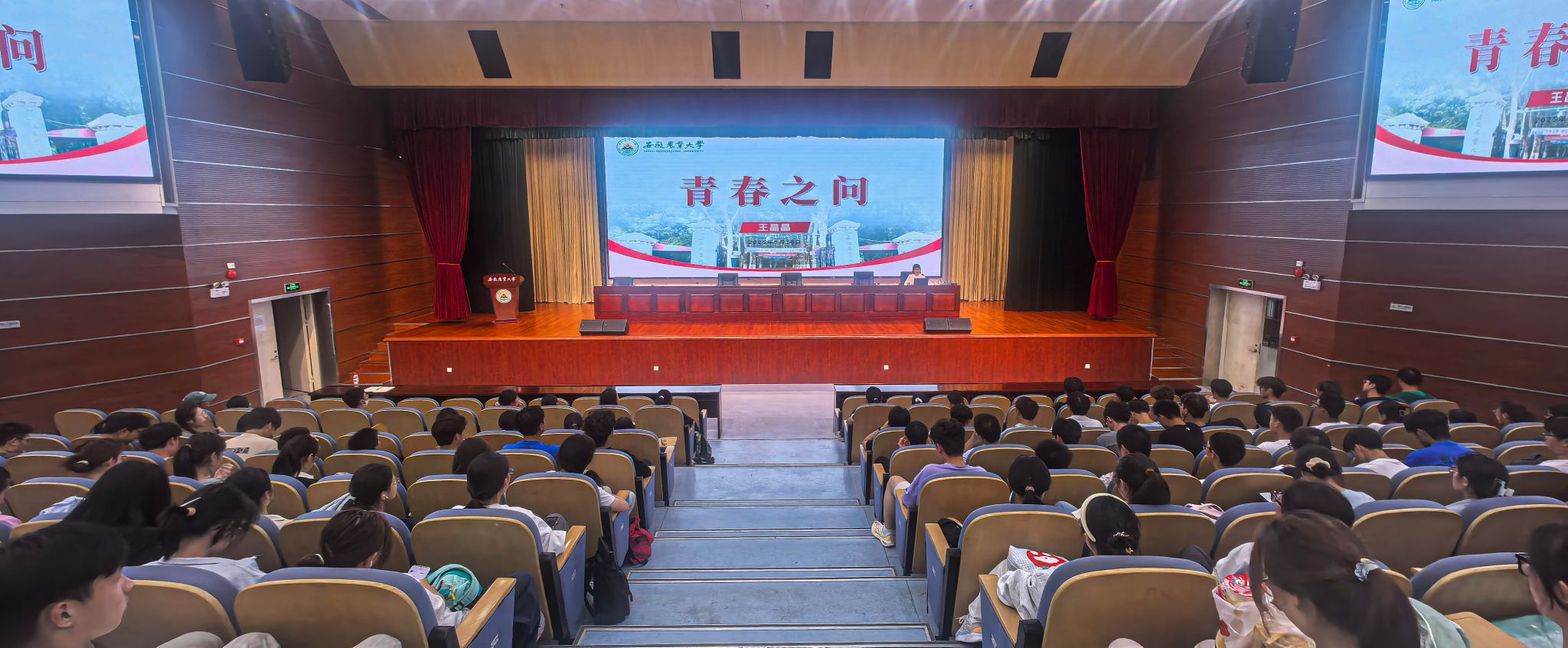 今年是“九一八”事变爆发94周年,王晶晶以《青春之问》为题,从山河回响——历史坐标中的青春抉择、时代之镜——现实方位里的青春画像、复兴之炬——未来征程上的青春担当三个维度,结合历史史实、英雄人物和英雄故事,引导同学们深刻理解爱国主义精神的时代内涵,鼓励同学们牢记历史、珍爱和平,将个人理想与国家命运紧密相连,树立远大志向,筑牢信仰之基。讲座现场气氛庄重,同学们神情专注,深受感染。