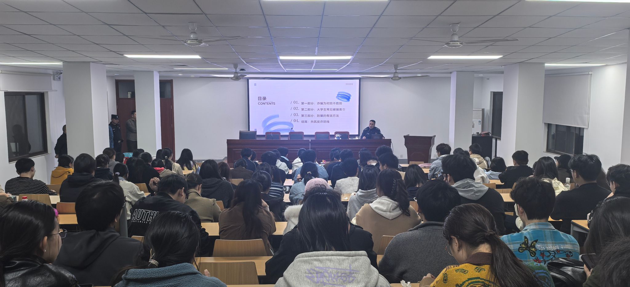 本次防诈骗宣传讲座是我校平安校园建设系列活动的重要组成部分。通过此次活动,有效提升了师生对电信网络诈骗的认知和防范能力,在校园内营造了“全民反诈、人人参与”的浓厚氛围,为构建和谐、安全、稳定的校园环境奠定了坚实基础。(图文/汪前 预审/张锐 卢伟 审核/吴永红)