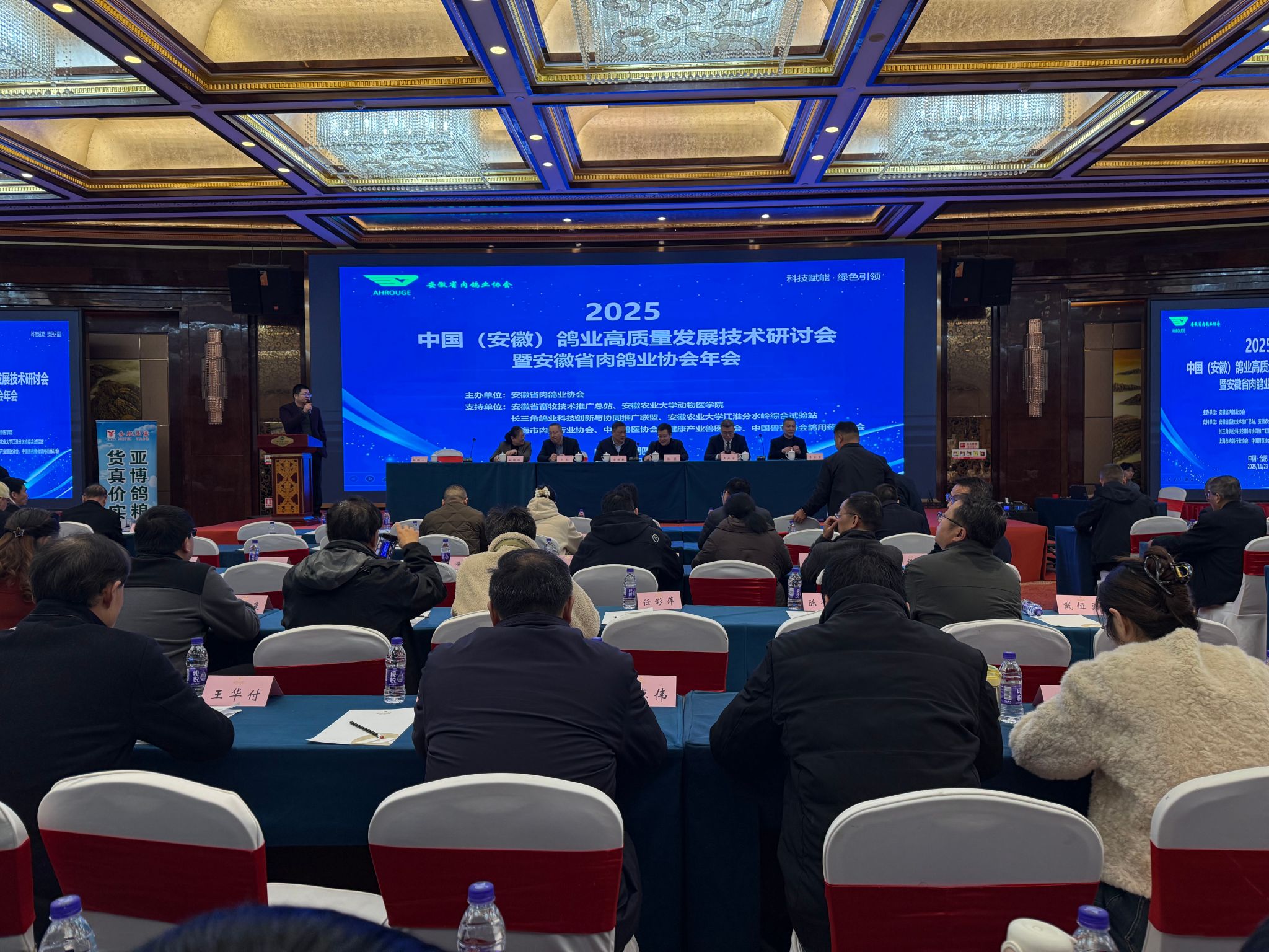 本网讯 11月23日,由安徽省肉鸽业协会与安徽省畜牧技术推广总站联合举办的“中国(安徽)鸽业高质量发展技术研讨会暨安徽省肉鸽业协会年会”与“全省肉鸽产业高质量发展技术培训班”在合肥同期开幕。学院院长孙裴应邀出席开幕式并致辞。协会副会长兼秘书长、学院杨聪山博士主持开幕式。