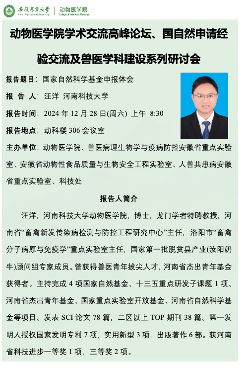 动物医学院学术交流高峰论坛、国自然申请经验交流及兽医学科建设系列研讨会