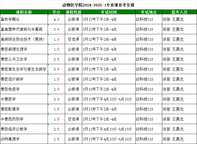 动医学院2024-2025学年第二学期开学专业课补考、缓考具体安排