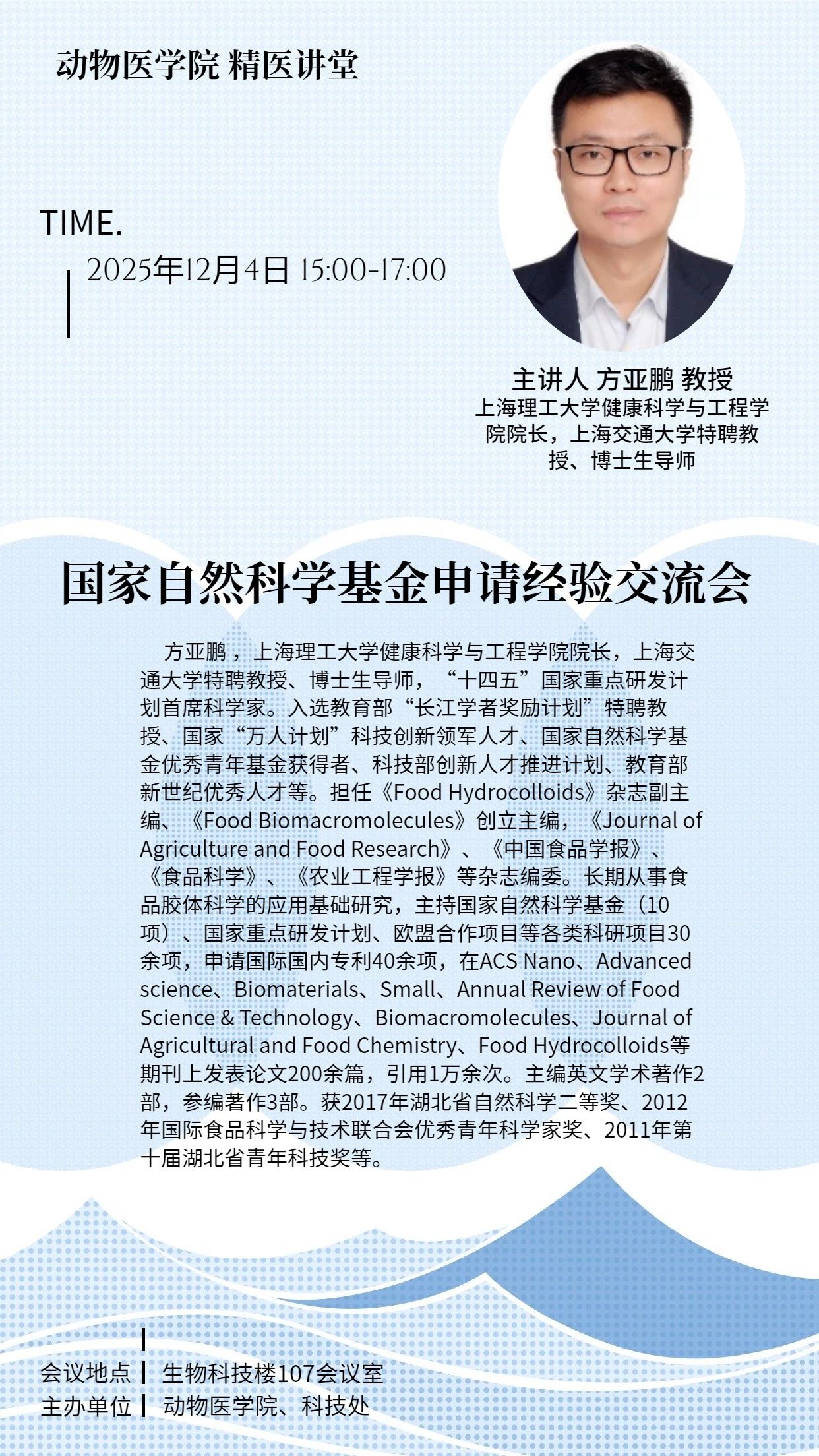 12月4日动物医学院“精医讲堂”:国家自然科学基金申请经验交流会