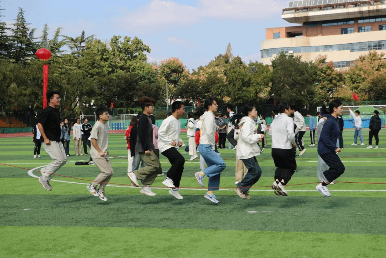 学院学子在滚铁环比赛中,不仅展现出了高超的技巧,更在比赛中表现出了顽强的拼搏精神和团队协作的力量。跳大绳动作整齐划一,展现出了学院学子超强的耐力和良好的协调性,每一次成功的跳跃都赢得了现场观众的热烈掌声和欢呼声。
