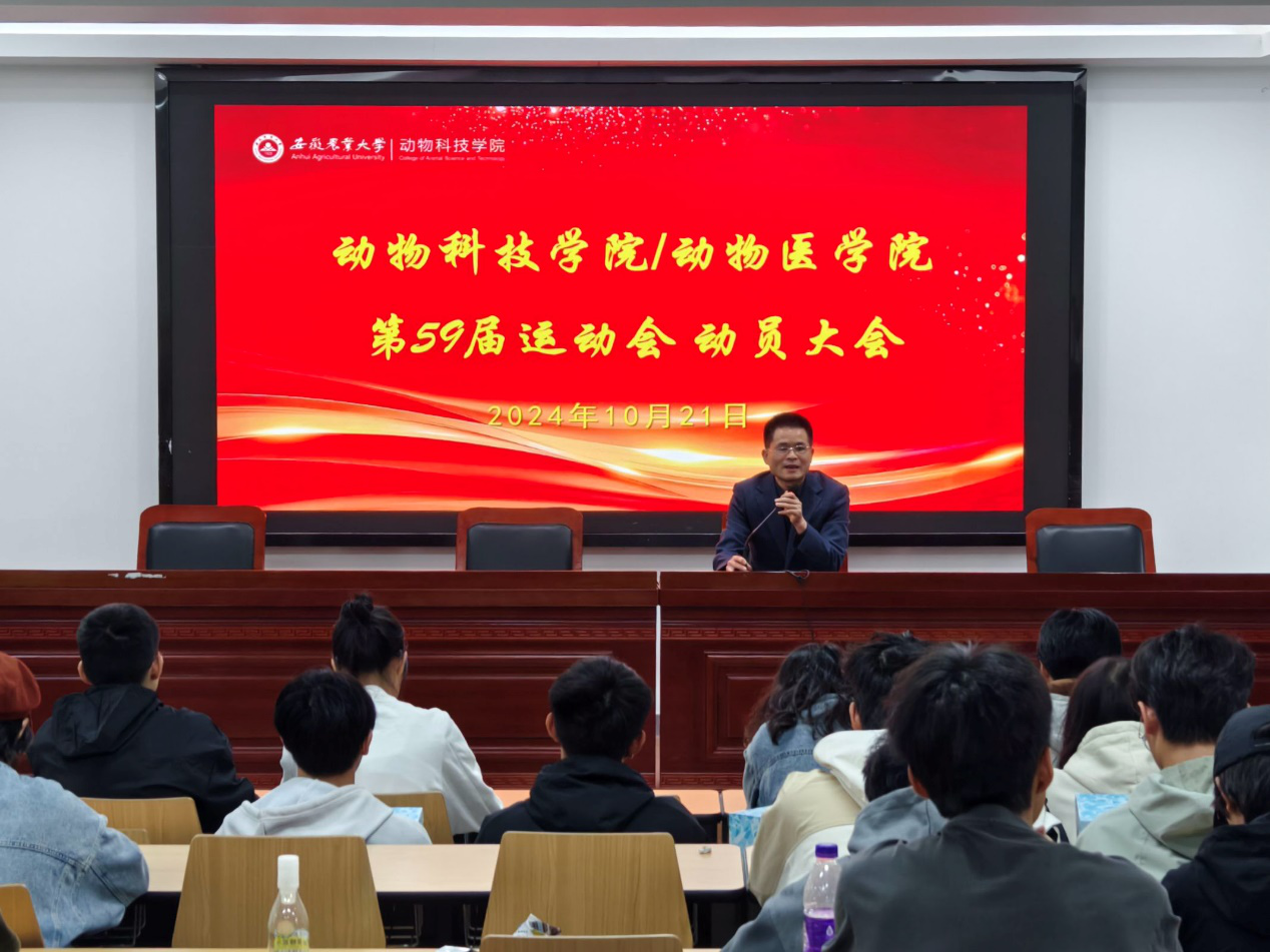 本网讯 10月21日,动物科技学院/动物医学院在学院318阶梯教室召开第59届运动会动员大会。学院党委副书记章巍出席会议并作动员讲话,全体运动员参加会议。