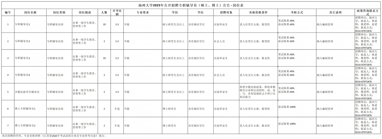 扬州大学人力资源处负责回答此次招聘政策咨询。